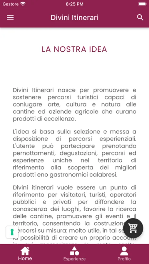 L'idea si basa sulla selezione e messa a disposizione di percorsi esperienziali. L'utente può partecipare prenotando pernottamenti, degustazioni, percorsi ed esperienze uniche nel territorio di riferimento alla scoperta dei migliori prodotti eno gastronomici calabresi.