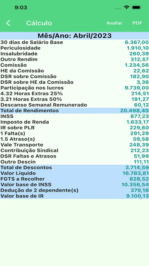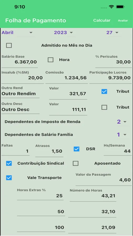 Você pode escolher o mês e o ano de cálculo e o número de dias úteis do mês, com a precisão absoluta de um profissional há mais de 35 anos no mercado.