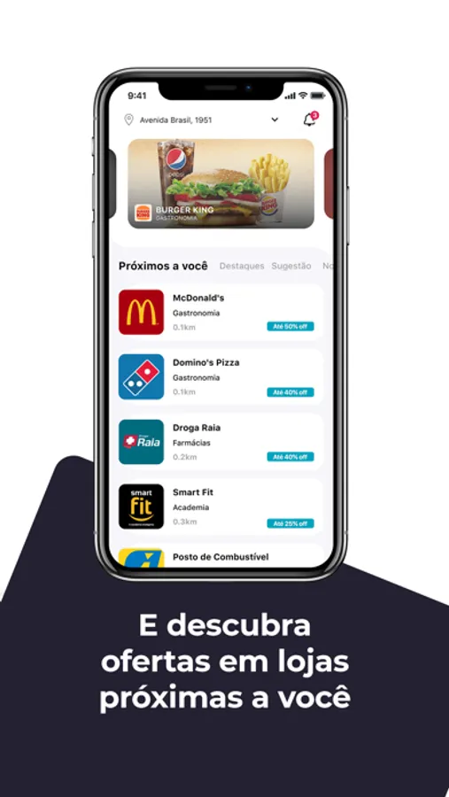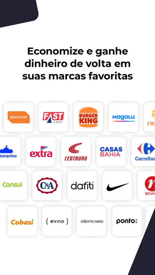 Navegue por um cardápio de ofertas com marcas parceiras de diversos segmentos.