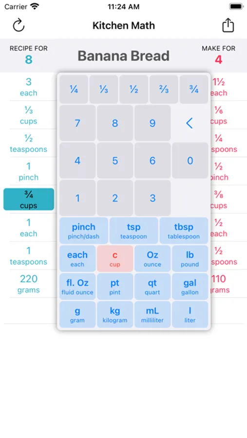 Whether you're a beginner or a seasoned pro, Kitchen Math is the must-have app for anyone who loves to create delicious meals and treats. Download Kitchen Math today and take the stress out of cooking and baking.