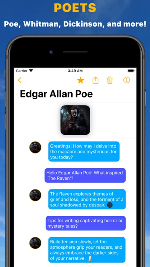 Educational and Engaging: Text With Authors is more than just an app; it's an immersive experience. Whether you're a student, a literature enthusiast, or someone seeking enriching discussions, this app offers an educational journey that broadens your literary scope. Dive into the minds of legendary writers and gain fresh insights on their timeless works.