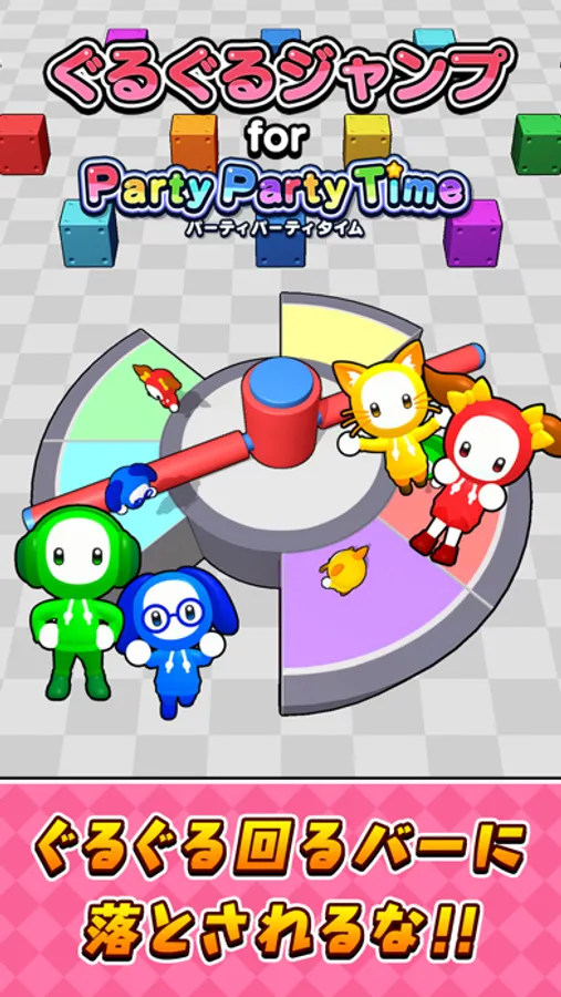 ぐるぐる回るバーに落とされないようにジャンプしよう!