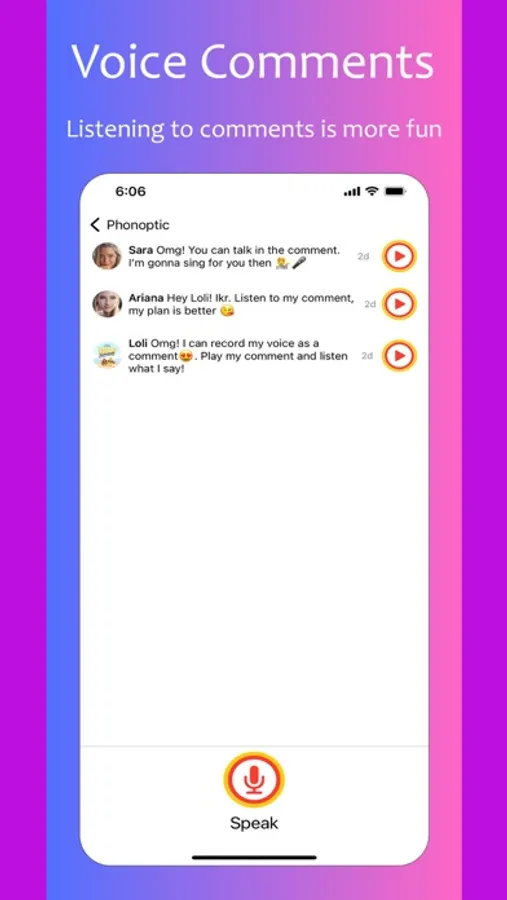 • Phonoptic post opens straight to the microphone — just tap to record your voice and speak what's in your mind