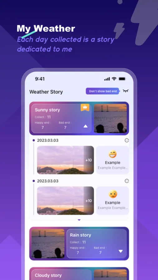 -Weather Story: Categorize the weather and record my exclusive stories for each weather.