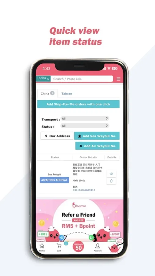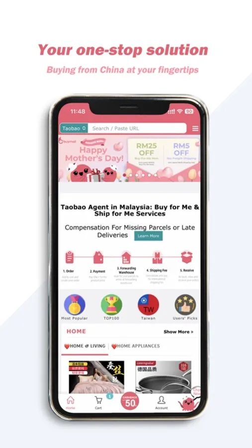 Welcome to BuyMall, Malaysia's top cross-border e-commerce Taobao shipping platform. We have 13 years of experience in the shipping industry, helping businesses transport raw materials, goods, and more from mainland China to Malaysia.