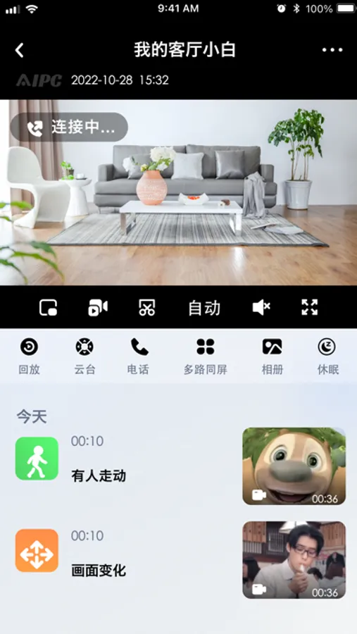 2、管理AIPC安防监控产品,如网络摄像机、录像机等,支持监控画面实时预览、录像、截图、语音对讲、云台控制及录像回放等功能;