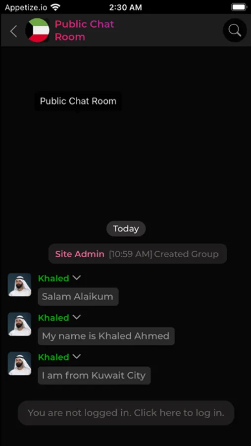 Kuwait Chat Room is a Free app to meet new friends in Kuwait. No Sign up or Registration required. Public and private chat room available.