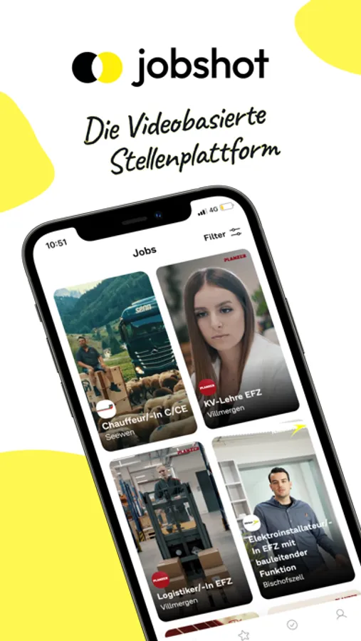 Die App Jobshot macht den Bewerbungsprozess einfach, direkt, authentisch und visualisiert. Gleich nach dem Du die App auf dein Smartphone geladen hast, kann die Suche nach dem Traumjob beginnen. Firmen stellen sich und die zu besetzende Stelle mit einem kurzen und prägnanten Video vor. ""Swipe"" durch die verschiedenen offenen Stellenenangebote und reagiere bei Interesse mit einer kurzen Videobotschaft direkt ab Deinem Smartphone.