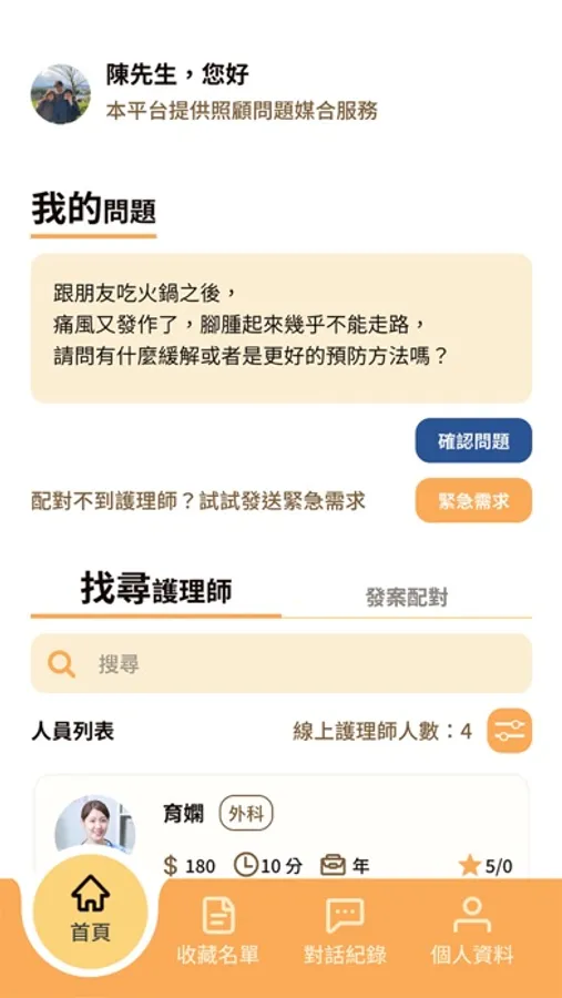 可以讓您透過 科別(外科, 內科, 精神科, 兒科, 婦產科, 麻醉科、老年醫學)、五等星、費用找符合您需要的專業人士。