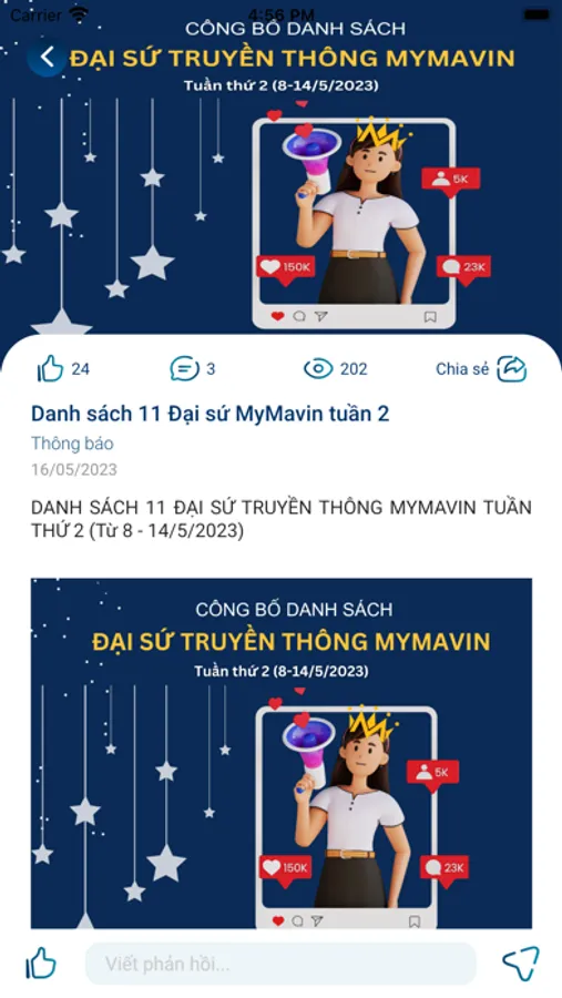 MyMavin là một một ứng dụng trên nền tảng điện thoại di động của Tập đoàn Mavin, nhằm xây dựng một môi trường làm việc số hóa, góp phần Kết nối con người Mavin, Lan tỏa văn hóa Mavin và Sẻ chia giá trị Mavin.