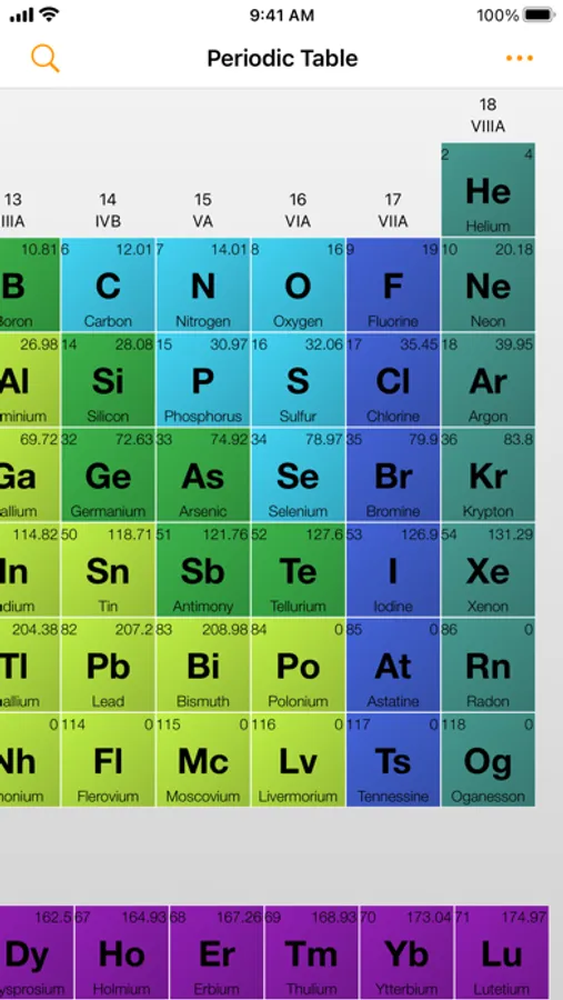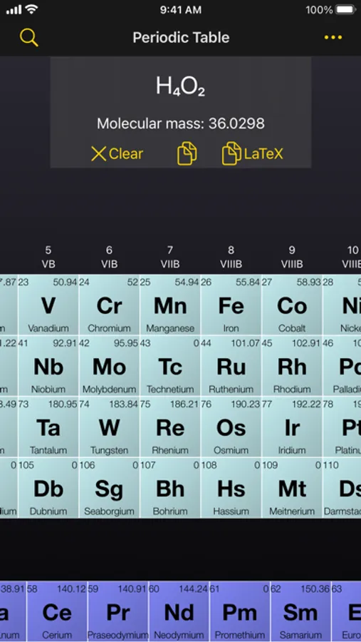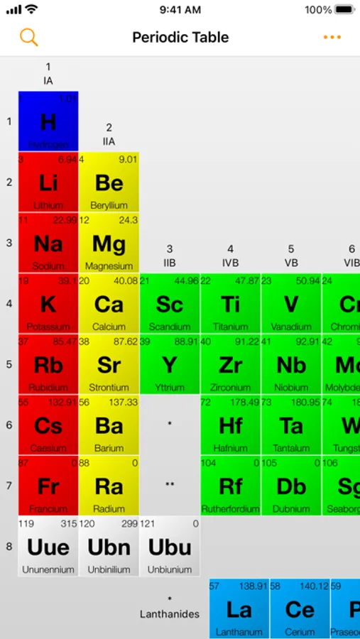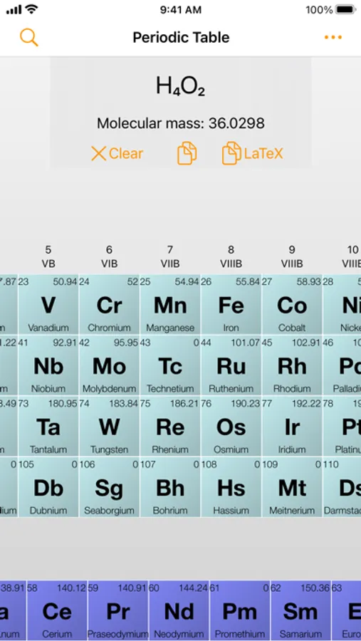 A quick Mendeleïev's table using a little space. Accessible with VoiceOver, it is a useful reference for students and people interested in chemistry. It reports many data related to chemical elements, that you can select and copy.