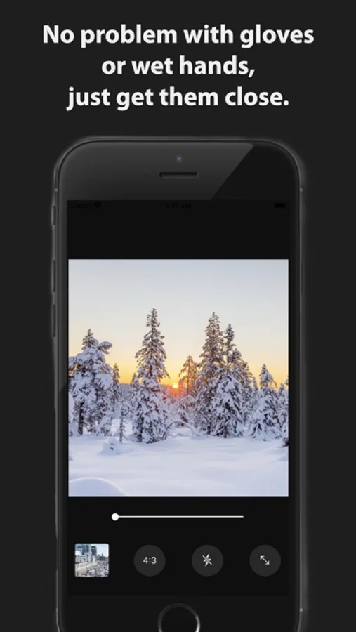 You can also take pictures by holding the camera against your face or gloves. Even if your hands get wet, you can take pictures without touching the phone.