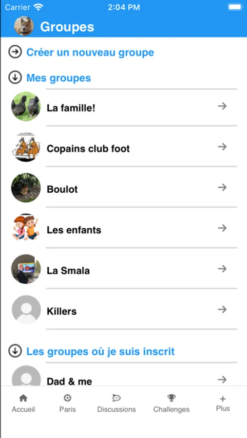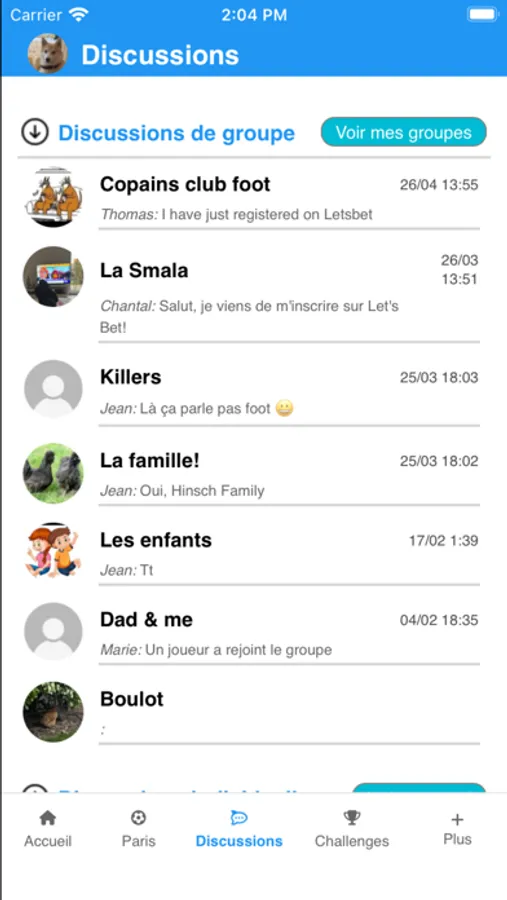 A chaque création de groupe, un chat est lancé pour vous permettre d'échanger avec les membres du groupe.