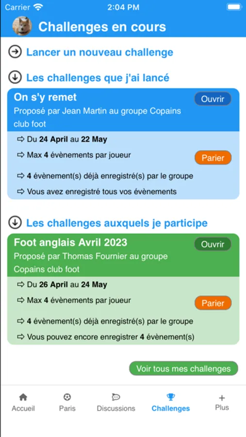 2. Puis vous créez un challenge que vous soumettez à ce groupe