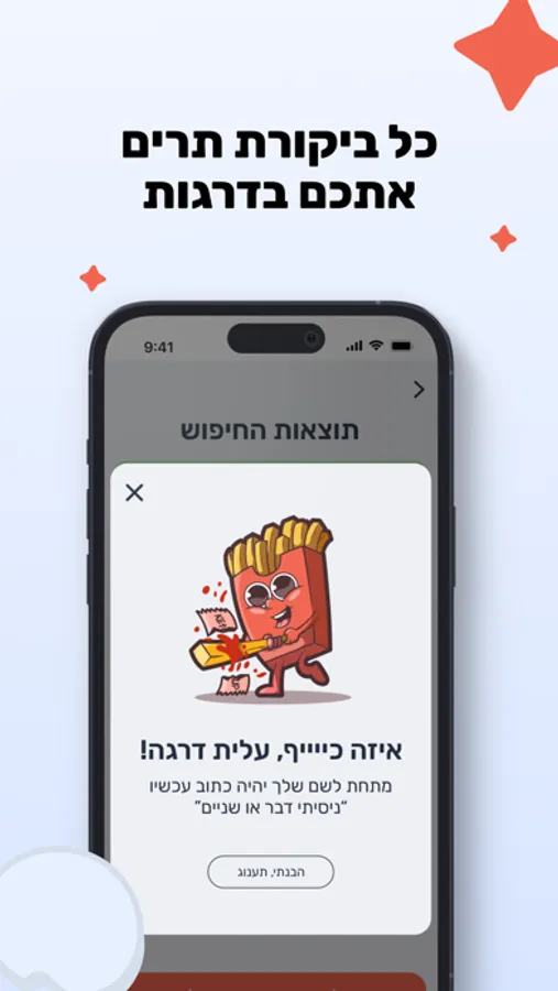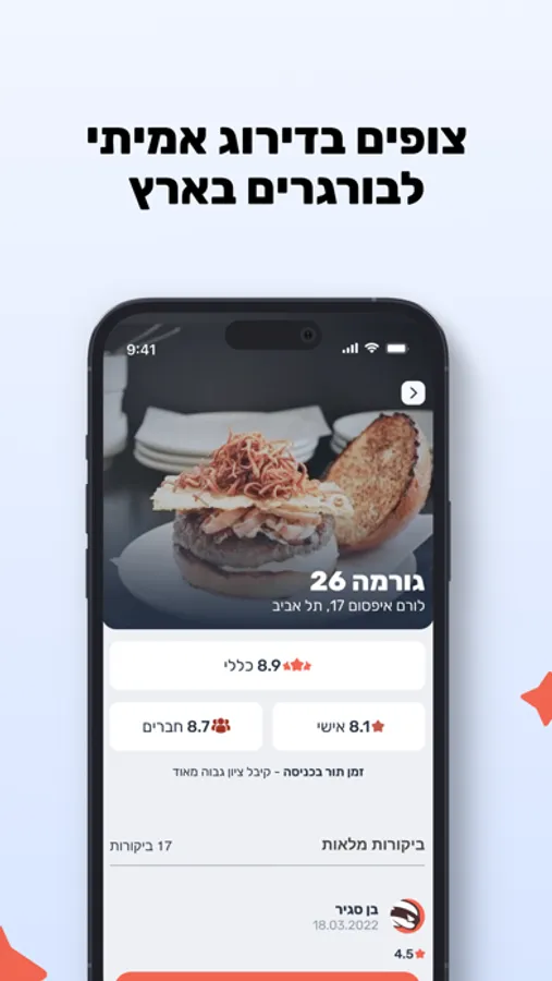 וזהו! הציון שההמבורגר קיבל מכם יופיע על המסך והתגובה תופיע למשתמשים נוספים באפליקציה!
