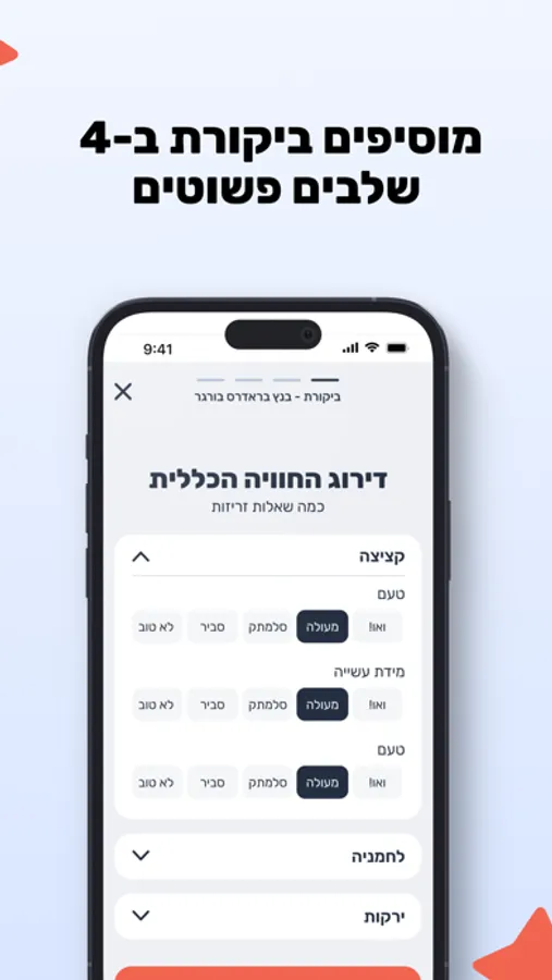 - בשלב האחרון ניתן לכתוב תגובה בטקסט חופשי על החוויה ולצרף תמונות