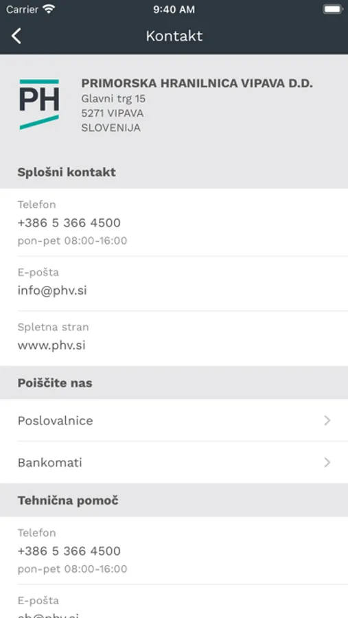 • prikaz poslovalnic z odpiralnimi časi in kontaktnimi podatki;