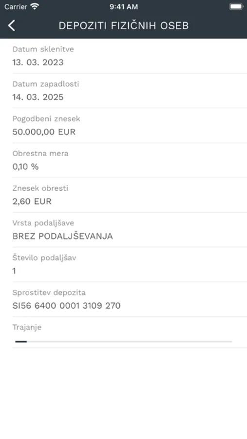 • pregled podatkov o sklenjenih depozitih (stanje, datum sprostitve, grafični prikaz trajanja);