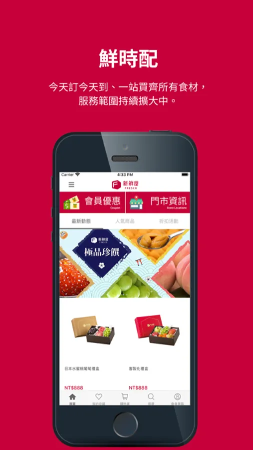 趕緊下載【新鮮屋 FRESCO】APP、享受優質商品及親切的服務:
