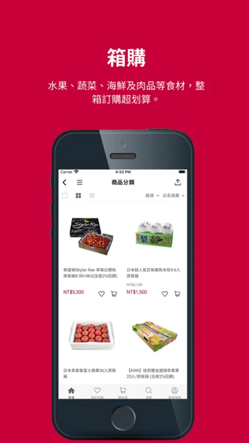 【箱購】 水果、蔬菜、海鮮及肉品等食材,整箱訂購超划算。