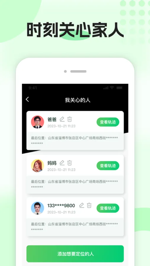 寻位定位守护可提供定位实时位置查询,历史行动轨迹、一键求助等功能均可应对紧急事件发生,贴心守护家人朋友的安全。
