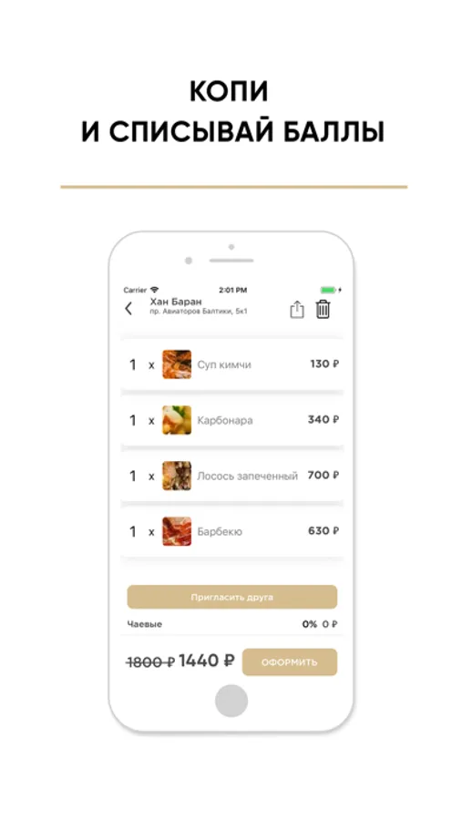 Заказывайте доставку или самовывоз в приложении и получайте кешбэк баллами на следующие заказы.