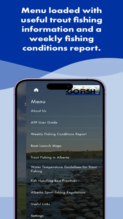 - And a menu loaded with useful trout fishing information