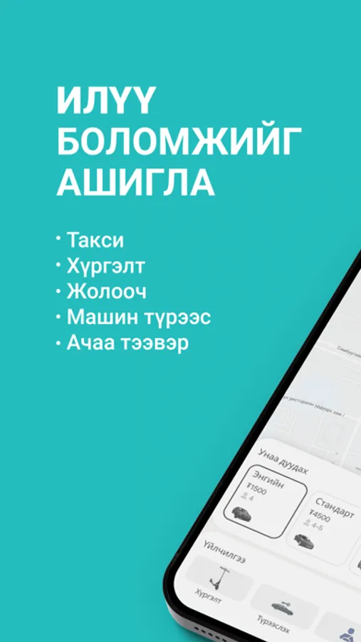 АБА-г та ашигласнаар хотын аль ч цэгээс 24/7 такси үйлчилгээ, хүргэлт, машин түрээс, дуудлагын жолооч түргэн шуурхай дуудах боломжтой бөгөөд аялалаа урьдчилан тооцооллох боломжтой юм.
