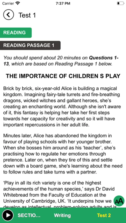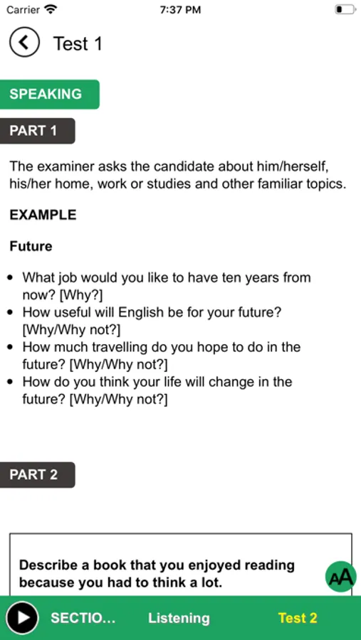 IELTS consists of four components. All candidates take the same Listening and Speaking tests. There is a choice of Reading and Writing tests according to whether a candidate is taking the Academic or General Training module.