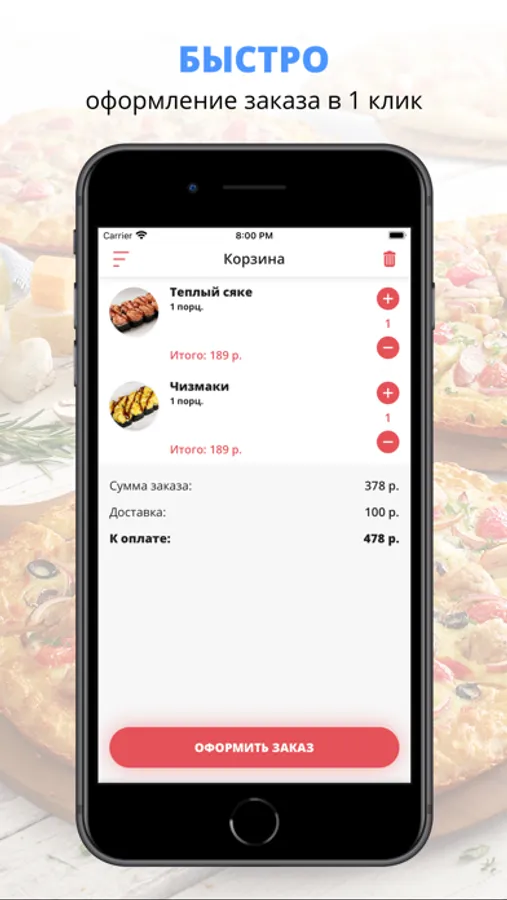 Скачивайте наше приложение, оформляйте заказ и наслаждайтесь любимой едой, где бы Вы ни были! Приятного аппетита!