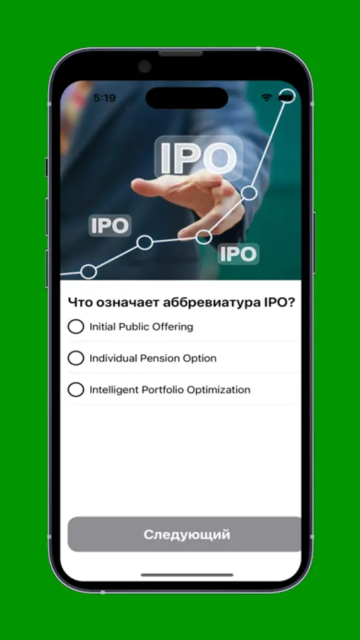 Наше приложение предназначено как для новичков в инвестировании, так и для опытных трейдеров. Для новичков оно является отличным помощником в подготовке к инвестированию, предоставляя базовые знания и информацию о рынке. Кроме того, начинающие трейдеры смогут проверить свои силы в ходе информативной викторины. Опытные трейдеры могут воспользоваться инструментами приложения для отслеживания котировок на рынке и получения реального времени обновлений, что может быть полезным для принятия обоснованных инвестиционных решений.