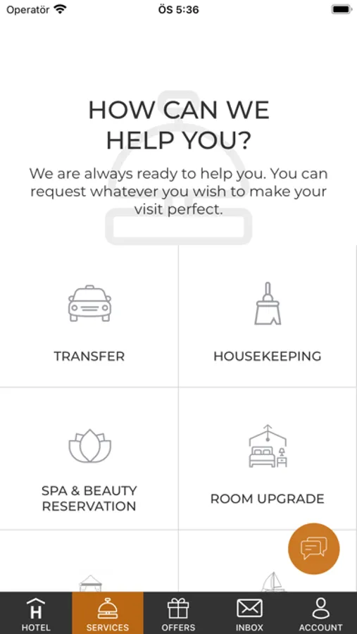 During your stay, you can benefit from Restaurant Reservations, SPA Reservations, Requesting Room Supplies, Reporting Room Problems, Transfer Services, Concierge Services, Housekeeping, Tray Collection, Baby Supplies, Cabana Reservation, Requesting Baby Supplies, Ironing, Washing, and Special Request guest services by the Lujo Hotel mobile application. Even you can order food and beverages in your room and dine in the comfort of your home. Moreover, you can see and easily request the available offers on the Offers menu.