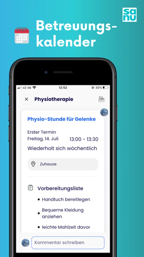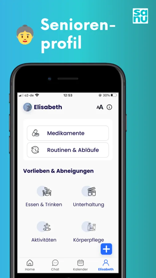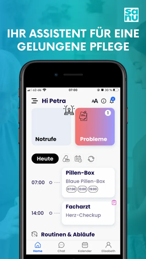 Die sanu-App ist Ihr Assistent für eine gelungene Pflege.
