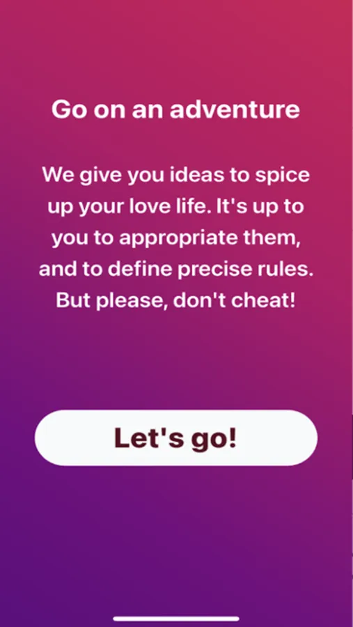 Introducing Naughty Couples Games! Dirty - the ultimate app for couples seeking to reignite the spark, explore their desires, and push the boundaries of intimacy together. With many enticing questions and daring challenges, you and your partner will embark on a thrilling journey of discovery and passion.