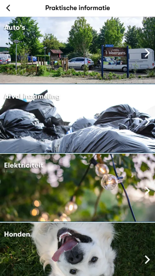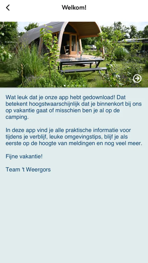 Praktische en leuke informatie over je verblijf op Camping ’t Weergors vind je in deze handige app. Openingstijden, het recreatieprogramma, informatie over faciliteiten, huishoudelijke regels, en inspiratie voor dagjes uit: met deze app heb je alles makkelijk bij de hand.