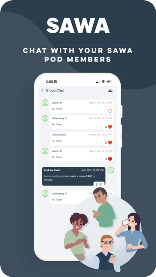 With Sawa's community chat, you can get to know your community members, share valuable financial insights, and stay connected. We encourage you to use the community chat as a way to stay connected to those who you will be helping and receiving help from.
