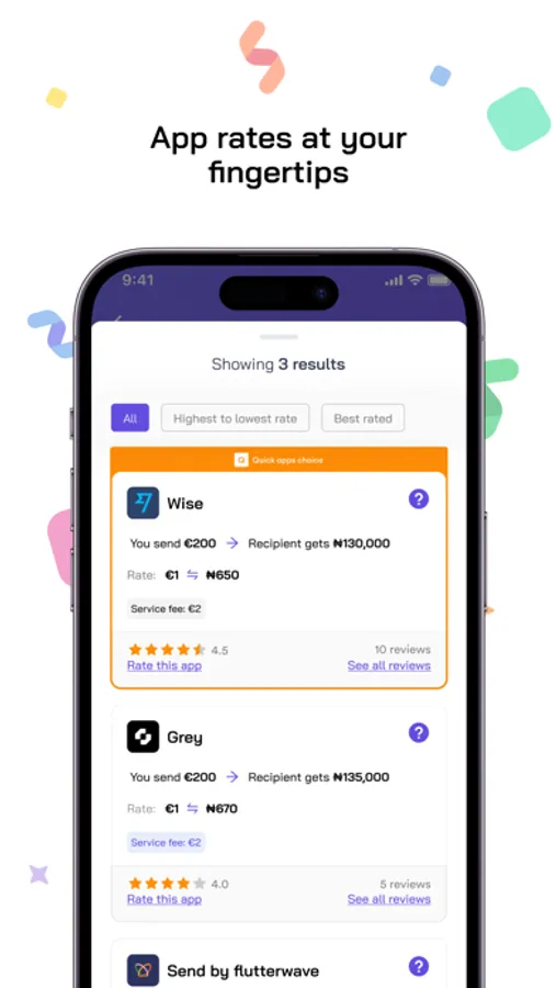 Best Rates is an easy-to-use app that allows you to compare exchange rates from your favorite apps in real-time. Whether you're traveling abroad, shopping online, or sending money to family and friends, Best Rates helps you find the best exchange rates quickly and easily.