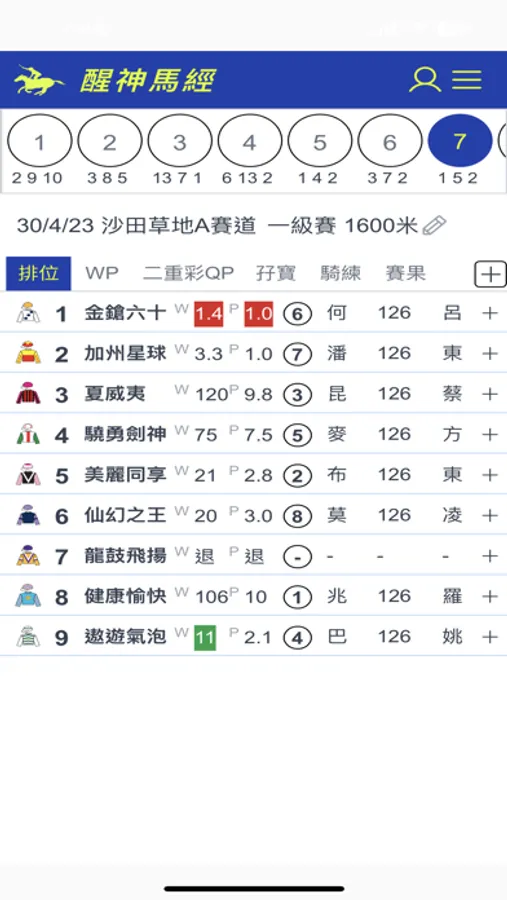 2. 排位 - 設有展開及折疊功能,方便查看各場賽事所有或特定馬匹的詳細資料。