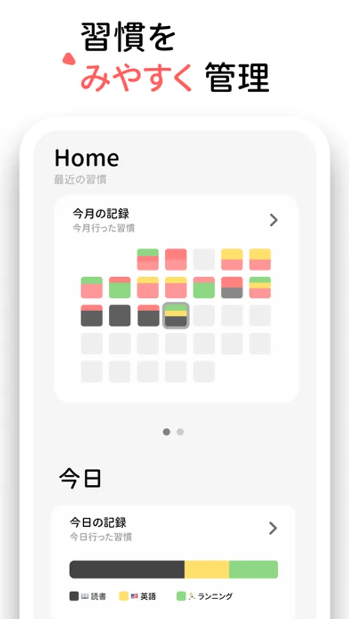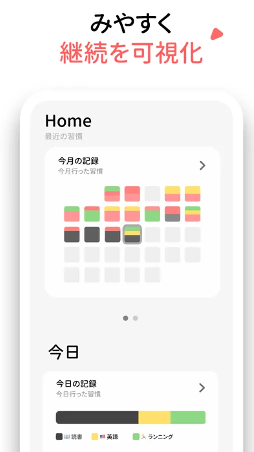 絵文字と色で習慣を登録し、過去の記録を見やすく表示でき、習慣化や継続につながります。