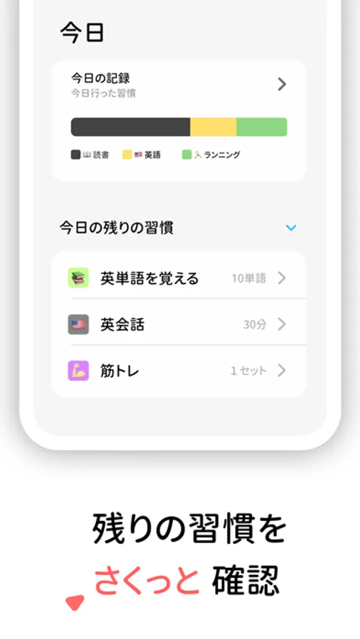 今日、今週、今月まだ行っていない習慣も表示されます。