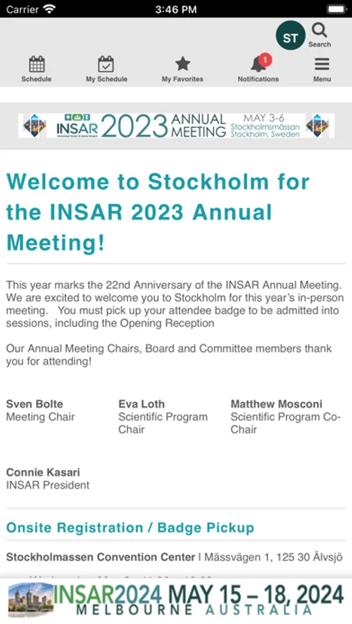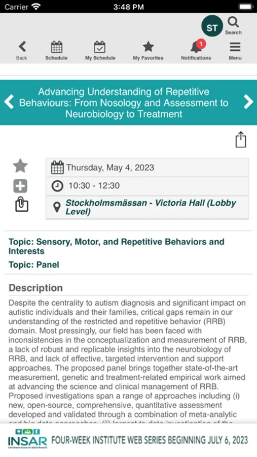 The 2023 INSAR meeting will be help May 3rd-6th, 2023 in Stockholm, Sweden. Login to view session, papers locations, floor plans, and people. Attendees will now to able to facilitate their experiences at the meeting using the mobile application.