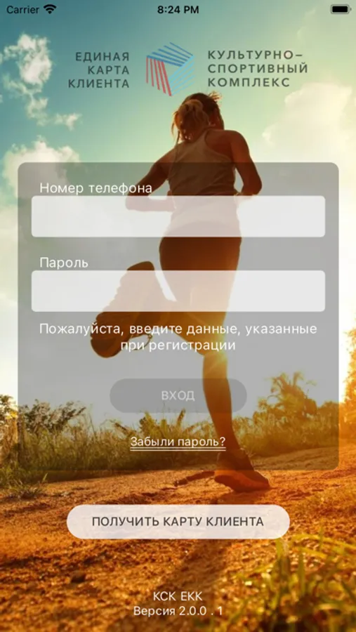 Мобильное приложение «Единая карта клиента» - приложение для клиентов Культурно-спортивного комплекса (далее - КСК), позволяющее регистрировать единую карту клиента, пользоваться существующим, клиентоориентированным функционалом CRM системы «Единая карта клиента», получать информация о приобритенных клиентом услугах, предоставляемых на объектах КСК, и их остатке, получать информацию по программе лояльности или любую другую информацию, предусмотренную функционалом системы.