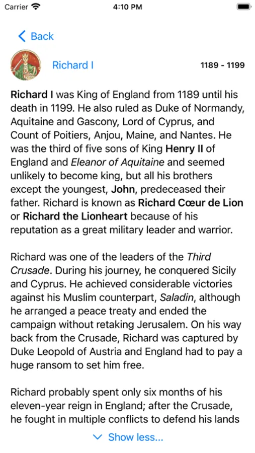 Whether you're a history buff or just curious about the kings and queens who have ruled England over the centuries, British Reigns is the app for you.
