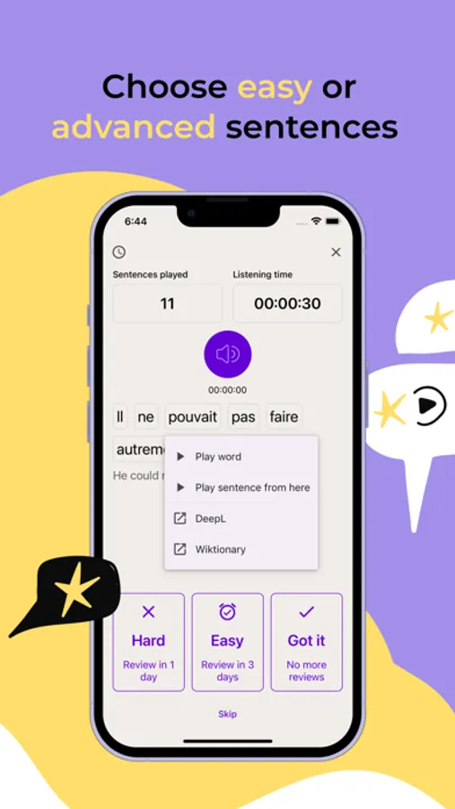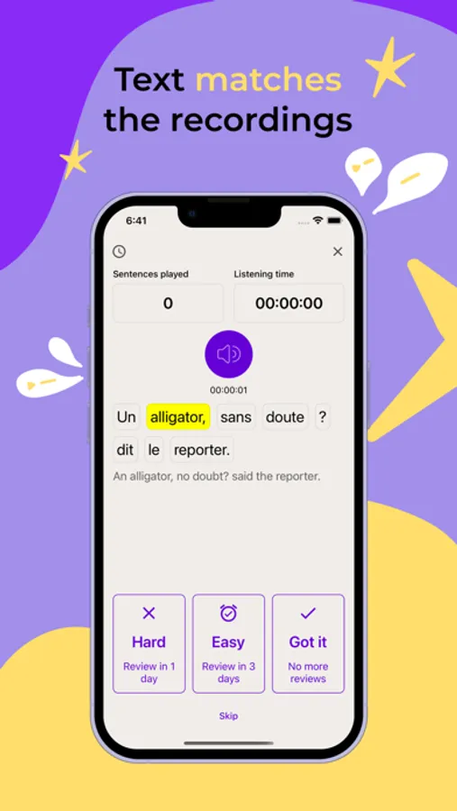 - Free & Premium Versions: Sign up for free and enjoy a limited number of sentences per day, or upgrade to the premium version for unlimited daily access and accelerated French learning progress.