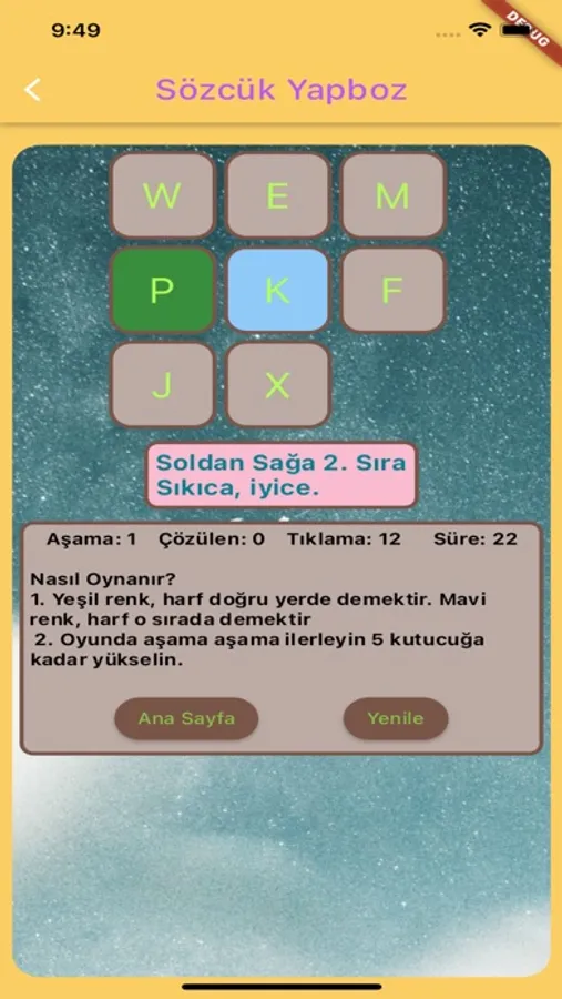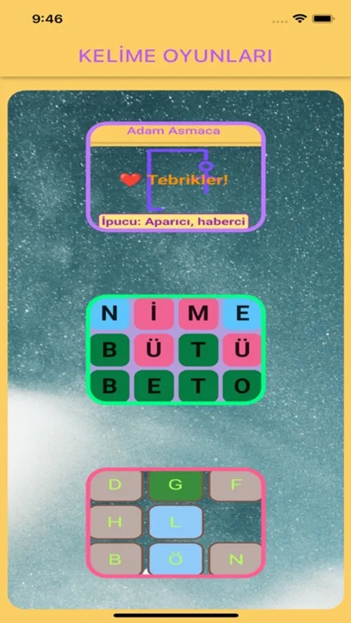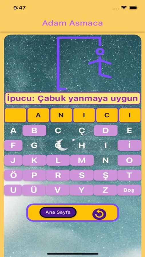 Kelime Bilmece, Adam Asmaca oyunu ve Sözcük yapboz oyununu oldukça seveceksiniz. Türkçe sunulan bu sözcük tahmin ve kelime bulmaca oyunlarımız ile harf harf kelime avı yaparak bulmacaları çözüp türetme yapılan sözcüklerle hem eğlenip hem de beyin gelişimine katkısını göreceksiniz.