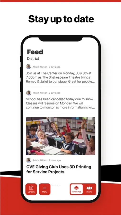 In the Live Feed is where you'll find updates from the administration about what's going on in the district right now. Whether that's celebrating a student's success, or reminding you about an upcoming deadline.