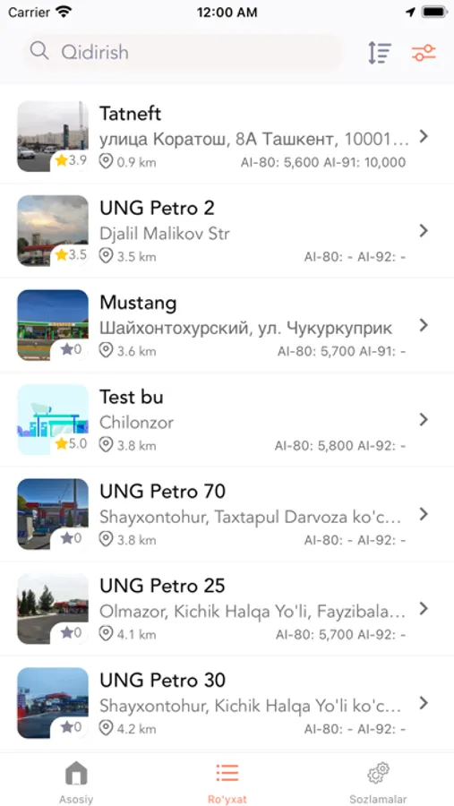 Ilova yaqin-atrofdagi shahobchalarni va ulardagi yoqilg'i narxlarini xaritada va ro'yxat ko'rinishida taqdim etadi. Kerakli shahobchaga bosgan holda u haqidagi to'la ma'lumotni ko'rishingiz, lozim topsangiz fikringizni qoldirishingiz ham mumkin.