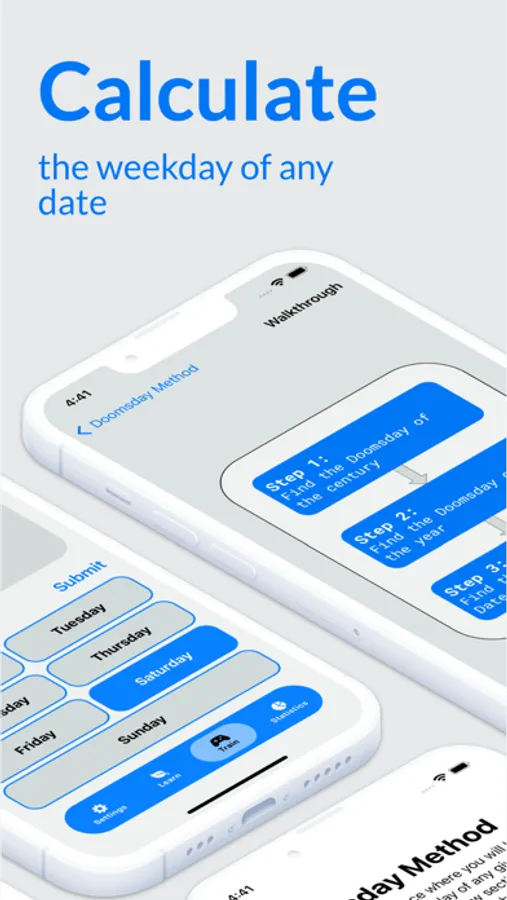 Discover the power of the Doomsday Method and unlock the ability to calculate weekdays effortlessly with the all-new Doomsday Method app. Whether you're a curious learner, a history enthusiast, or just seeking to sharpen your mental arithmetic skills, this comprehensive app is your ultimate guide to mastering the art of weekday calculations.