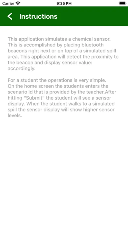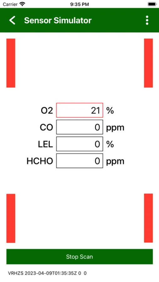 - The sensor simulator page shows the simulated sensor readings. They are 0 if no beacon is in range.