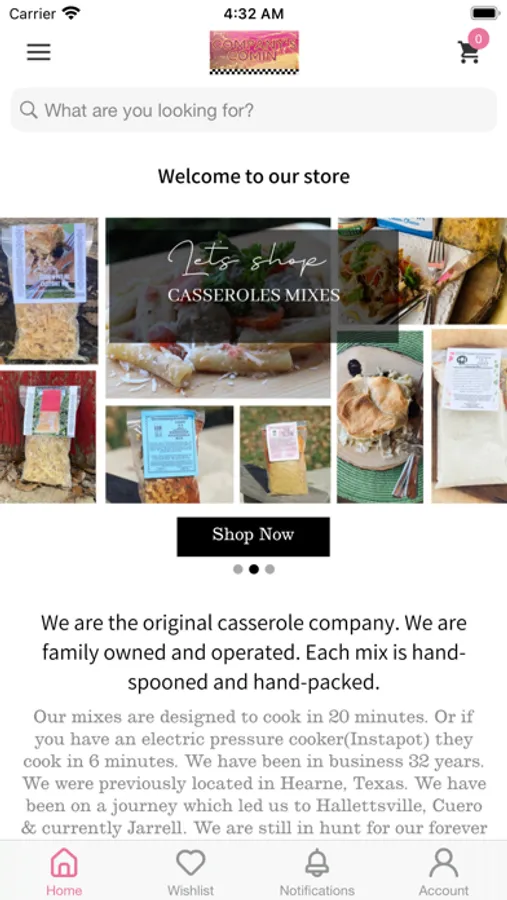 We are the original casserole company. Our mixes are designed to cook in 20 minutes. Or if you have an electric pressure cooker(Instapot) they cook in 6 minutes. We have been in business 32 years. We were previously located in Hearne, Texas. We have been on a journey which led us to Hallettsville, Cuero & currently Jarrell. We are still in hunt for our forever home. We previously did craft and gift shows but at this time we only offer purchasing online.
